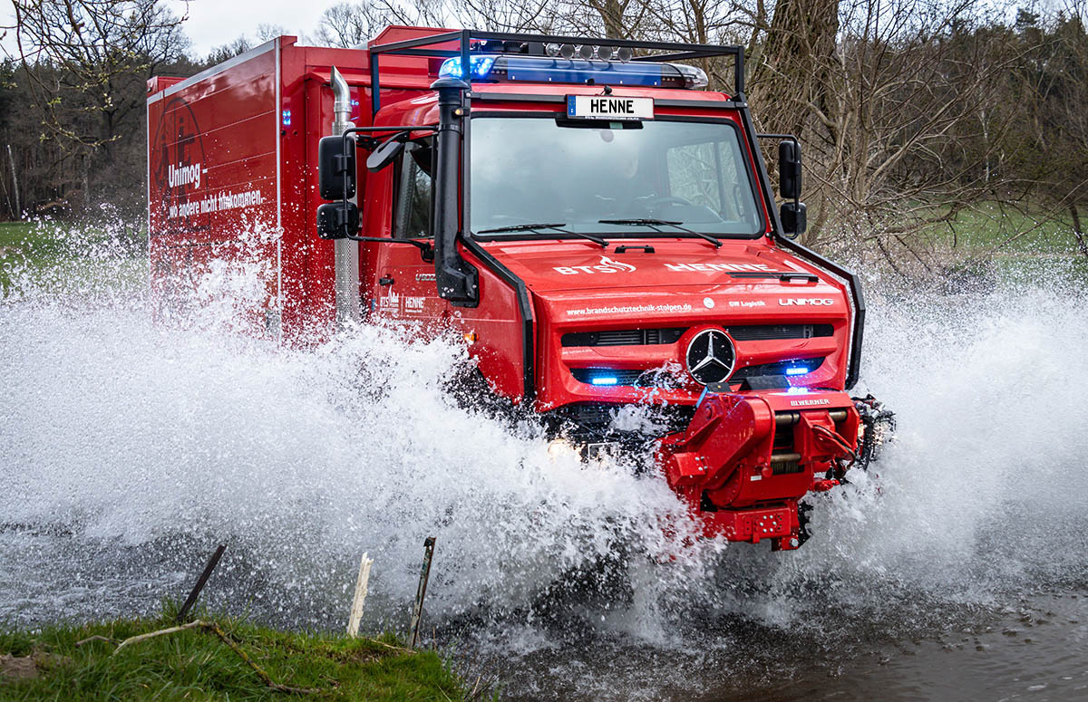 Der GW L1 Gelände ist weit mehr als ein reiner Lastenträger: Er bietet schnelle und flexible Hilfe bei Waldbränden, Hochwasser oder komplexen Rettungseinsätzen. Mit elektrohydraulischer Vertikalladehilfe lassen sich schwere Rollcontainer effizient entladen und neu bestücken – auch unter Zeitdruck.