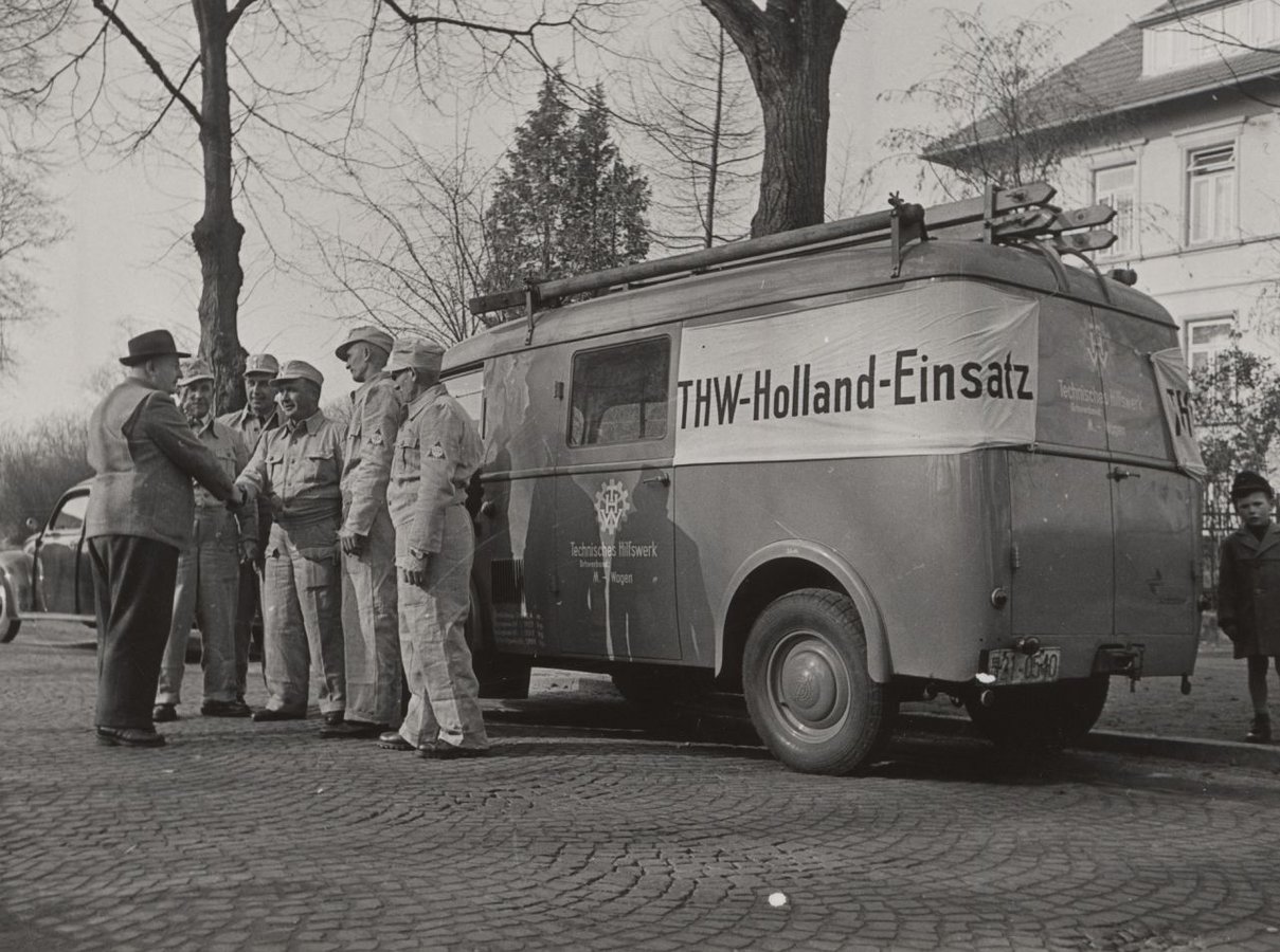 Foto: 1953, drei Jahre nach der Gründung des Technischen Hilfswerks, folgte bereits der erst Auslandseinsatz nach einer Sturmflut in den Niederlanden. Quelle: THW